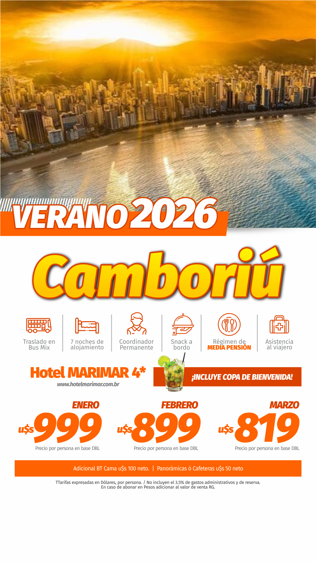Tarifas expresadas en Dólares, por persona. / No incluyen el 3.5% de gastos administrativos y de reserva.